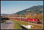Am verregneten 6.2.2026 wartet die 1016 010 mit der  Rollenden Landstraße  von Maribor Tezno nach Wels Terminal in Kleinreifling auf die Weiterfahrt nach einer Zugkreuzung.