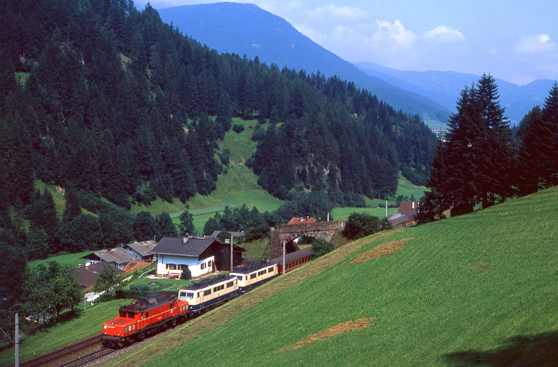 Eine österreichische 1020 hilft zwei deutschen 111 ihren aus italienischen Wagen bestehenden Schnellzug zu befördern - so etwas kann man sich im Vereinten Europa von heute nicht mehr vorstellen.