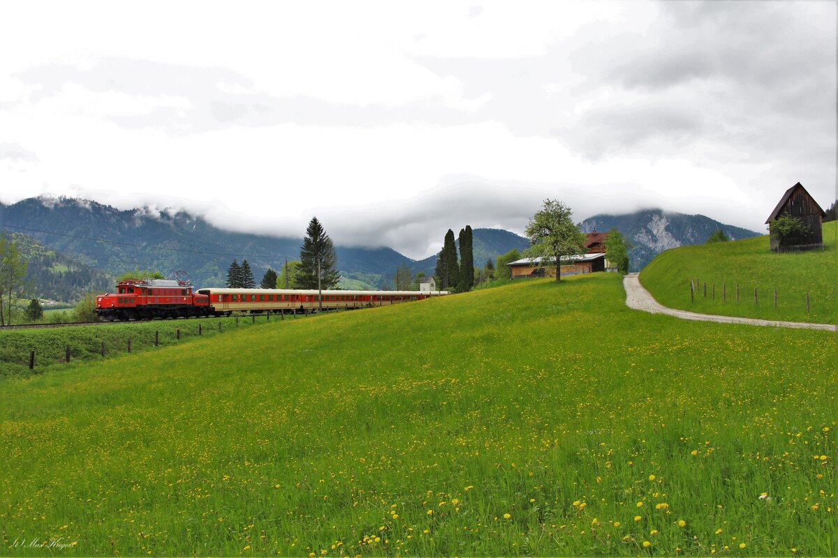 Kurz vor dem Bahnhof Admont fährt am 18.5.2023 die 1020.18 mit dem SLP14480 von Hieflau kommend in Richtung Selzthal im romantischen typisch Ennstaler Ambiente.