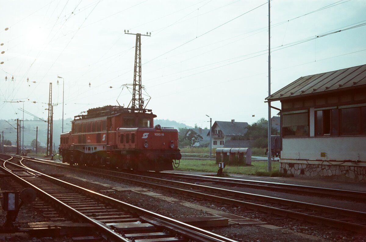 Ein schöner Abend in Arnoldstein im August 1983 mit der österreichischen Ellok 1020.18