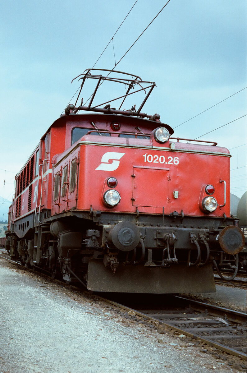 Österreichische E-Lok 1020.26 am Bahnhof Arnoldstein (1983)