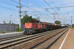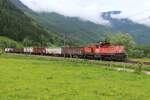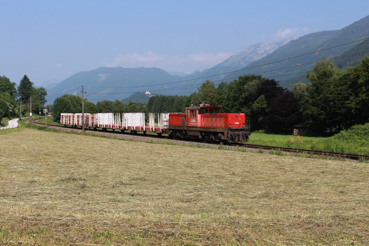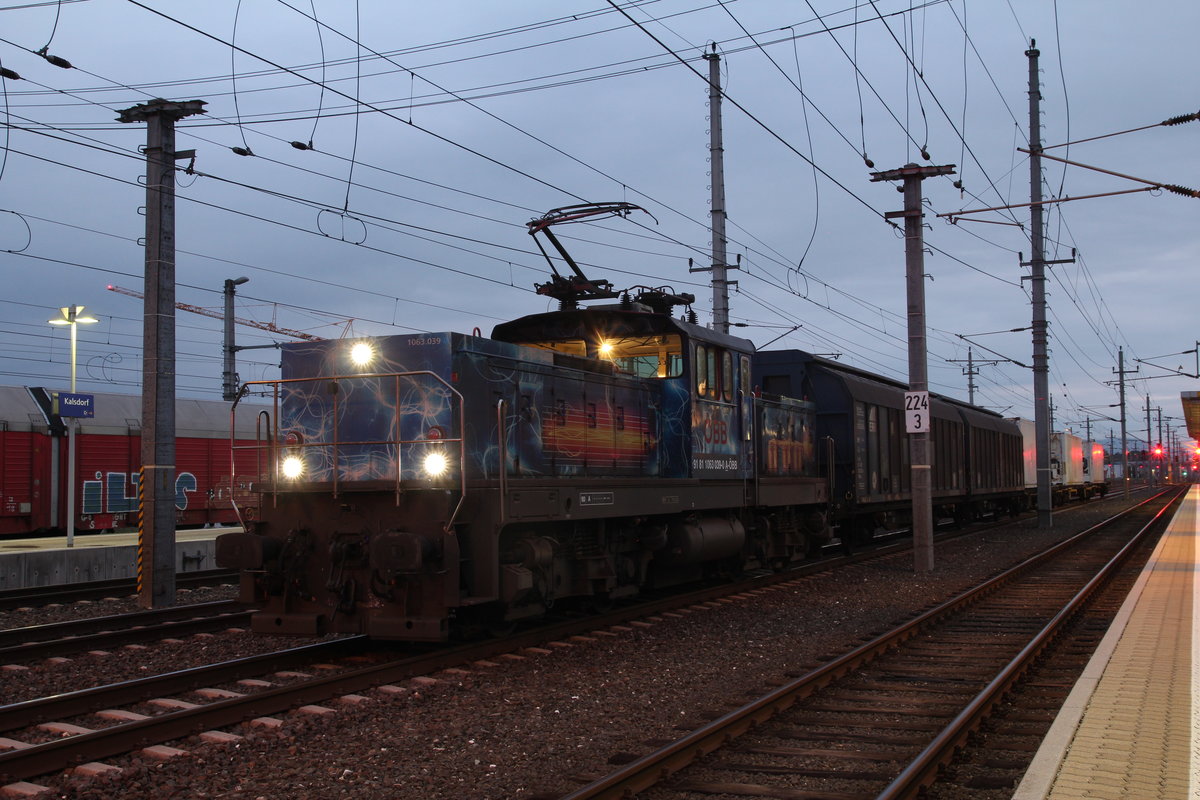 Die ehemalige "Last-Mile" Versuchslok 1063 039, die ihre aufbauten und Einrichtungen bereits verloren hat, steht früh morgens am 9.6.2020 in Kalsdorf und wartet mit dem NG65743 auf die Einfahrt ins Terminal Graz Süd.