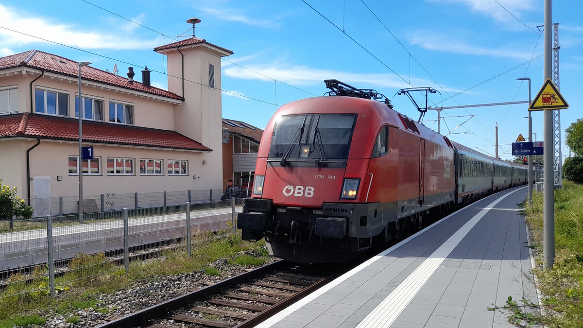 Am 14.8.22 ist 1116 220 der ÖBB bei der Ausfahrt aus Nonnenhorn Richtung Friedrichshafen.