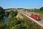 Am 28. März 2026 war 1116 247 mit dem rj 556 (Wien Hbf - Lienz) im Einsatz. Hier ist der Zug bei Aich im Jauntal zu sehen.