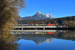 1116 039 war mit einem gemischten Güterzug am 20. März 2026 bei Übersee am Chiemsee in Richtung München unterwegs.