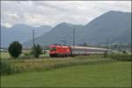 Am 12.06.2019 wurde RJ530 ausnahmweise mit einer Ersatzgarnitur gefahren. Bepannt war der Zug mit der 1116 045, hier zu sehen bei Bruck an der Mur.