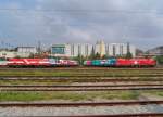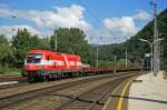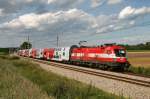 Taurus vorne, Verton hinten. ÖBB groß vorne, ÖBB klein hinten. Hier kann man mal gut vergleichen. 1293 045 + 1116 115 mit Aufliegern am 16.2.26 bei Eglharting.
