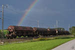 1116 253 zieht einen Güterzug, so gesehen Mitte August 2020 bei Fuchsreut.