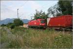 OEC 188 "Val Gardena/Grödnertal" von Verona Porta Nuova nach München Hbf war am 27.7.2007 ab dem Grenzbahnhof Brenner mit 1116.121 bespannt. Die Aufnahme entstand bei der Kehre in St. Jodok bei der Talfahrt der Brenner Nordrampe.