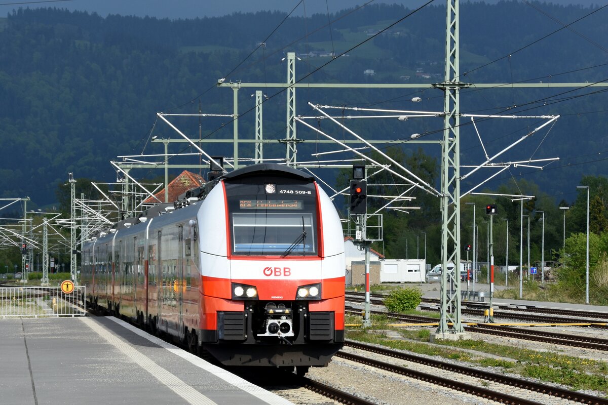 1116 105 mit dem "EC 112" aus Salzburg kommend am 8. März 2022 bei Übersee am Chiemsee.