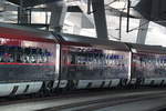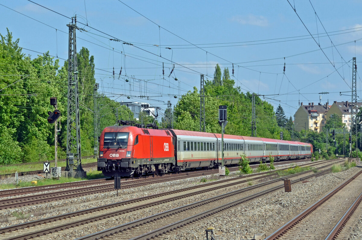 Von 1116 245 gezogen fährt der zweite, in Innsbruck endende Zugteil des Railjet auf Gleis 5 in den Wiener Hauptbahnhof ein.