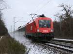 1116 186 war mit einem gemischten Güterzug am 28. Februar 2026 bei Axdorf im Chiemgau in Richtung München unterwegs.