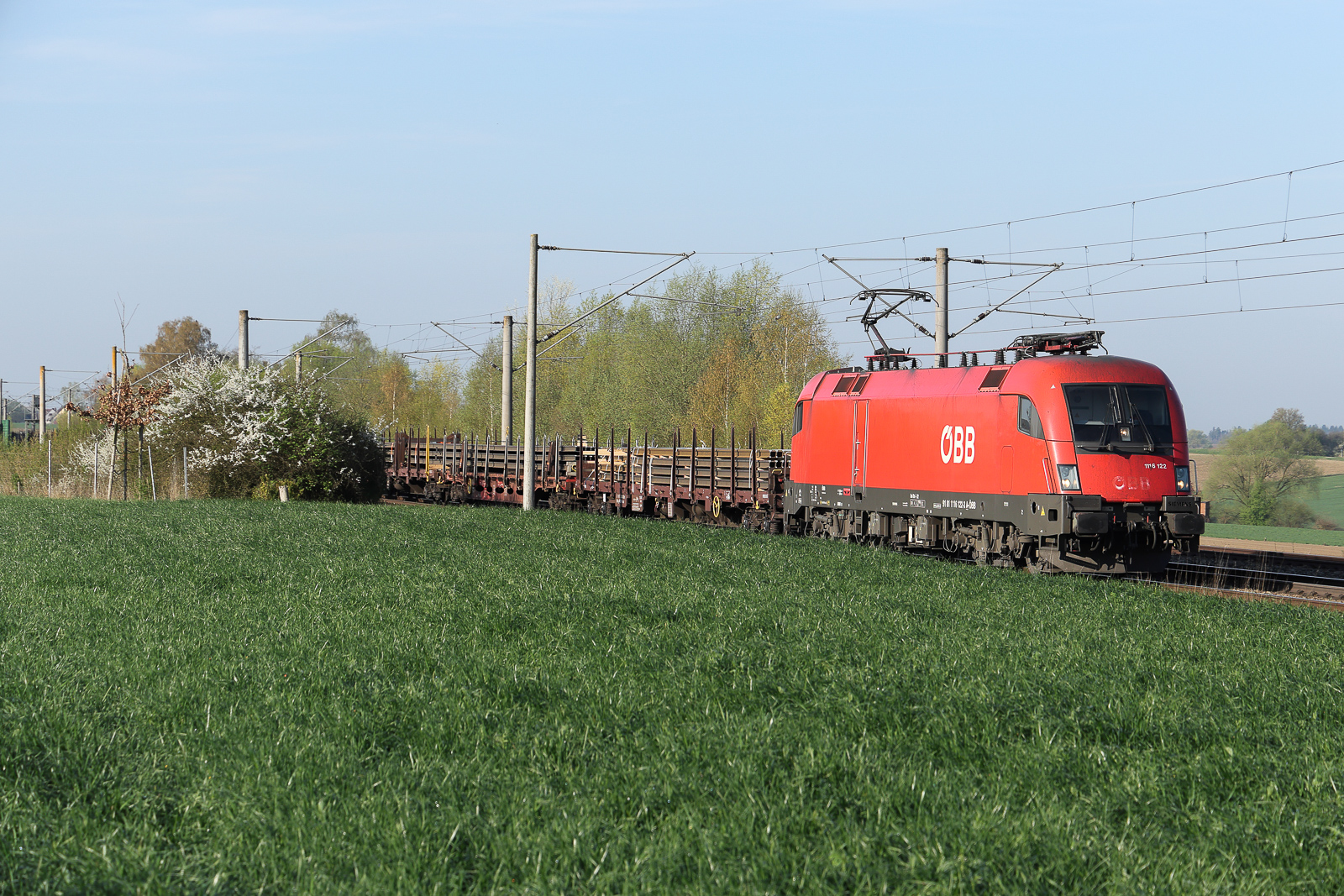 ÖBB 1116 122 mit Langschienen im Gepäck am 17.04.2026 bei Vierkirchen.