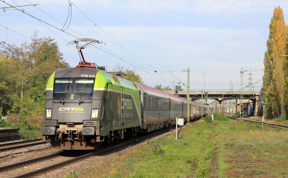 Am 27.10.2019 fährt 1016 014 mit EC 113 Frankfurt-Klagenfurt durch Stuttgart-Obertürkheim. Gruß an die getroffenen Fotografen und ein Dankeschön an den Melder.