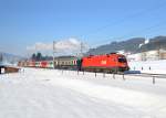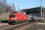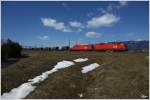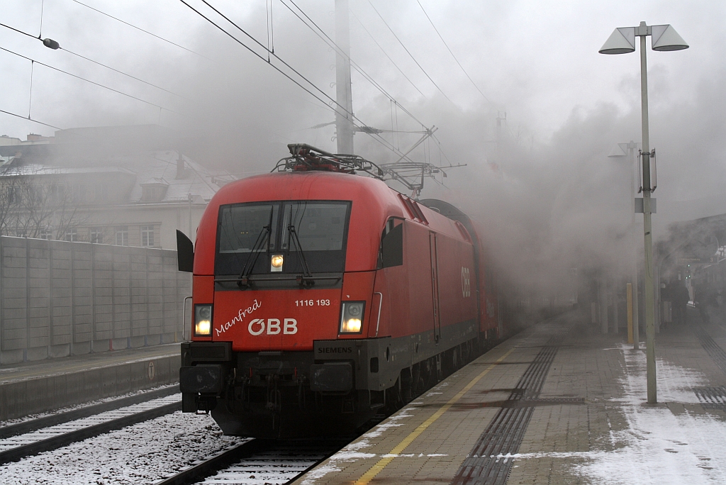 1116 193 wird am 31.März 2013 im Bf. Liesing vom Dampf-Russgemisch der daneben stehenden 93.1420 umrandet.