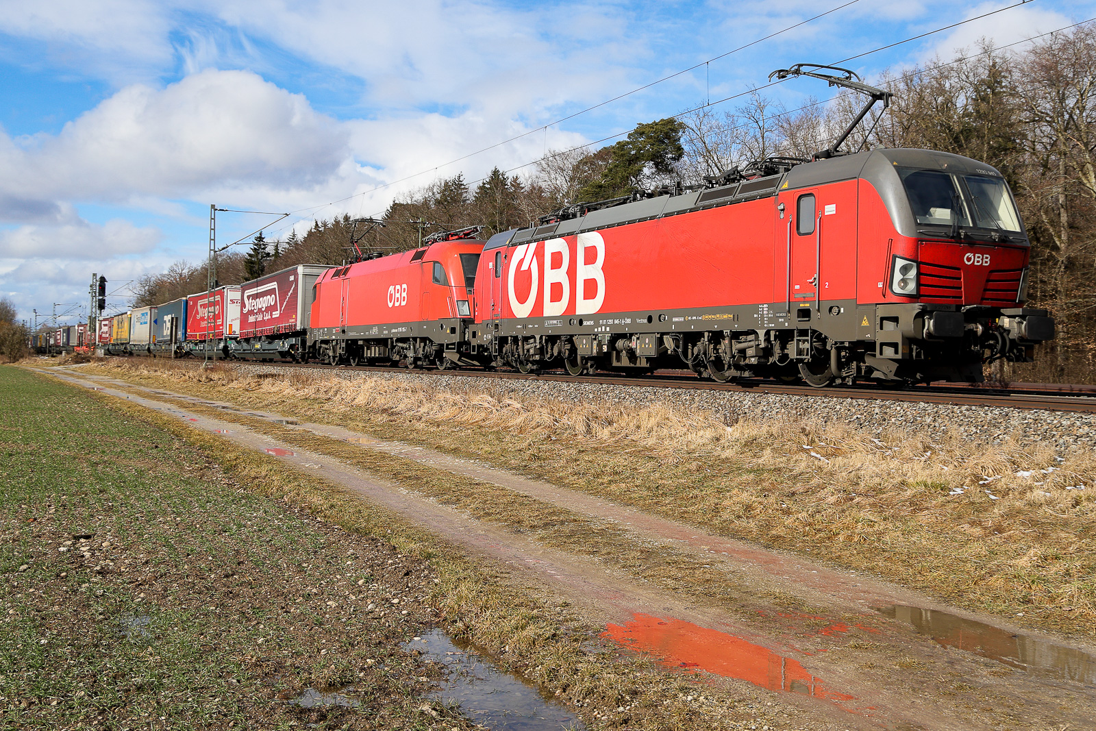 Im dichten Schneefall überqueren am 24.1.2015 die 1116 111 und eine 1144 mit einem gemischten Güterzug von Schwarzach-St.Veit kommendin Richtung Villach Süd Gvbf die 137m lange alte Angertalbrücke. Sie befand sich im Bahnhof Angertal, unmittelbar nach der Brücke begann der Weichenbereich. Seit 2016 wird die neue Angertalbrücke links davon befahren und der Bahnhof Angertal ist Geschichte, einzig das Bahnhofsgebäude erinnert noch daran.