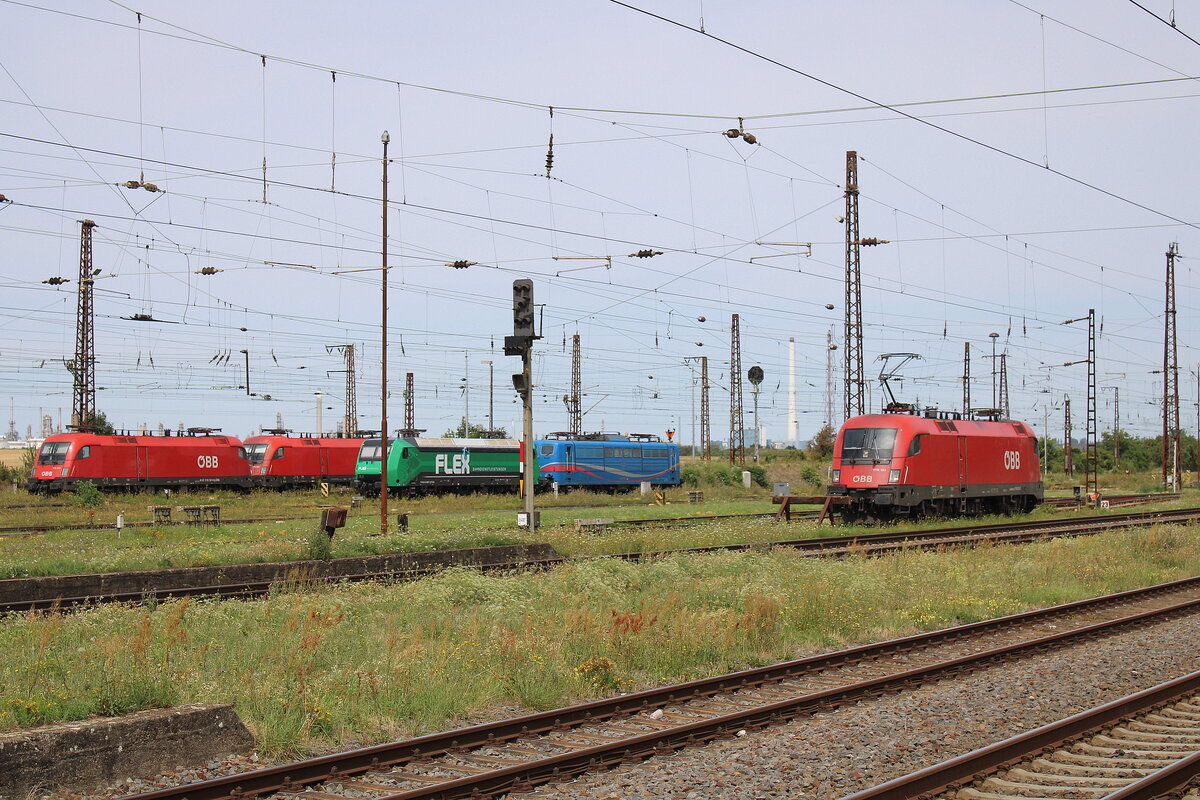 Neben einigen weiteren Loks pausierte am 07.08.2025 in Großkorbetha Rbf auch die ÖBB 1116 151.