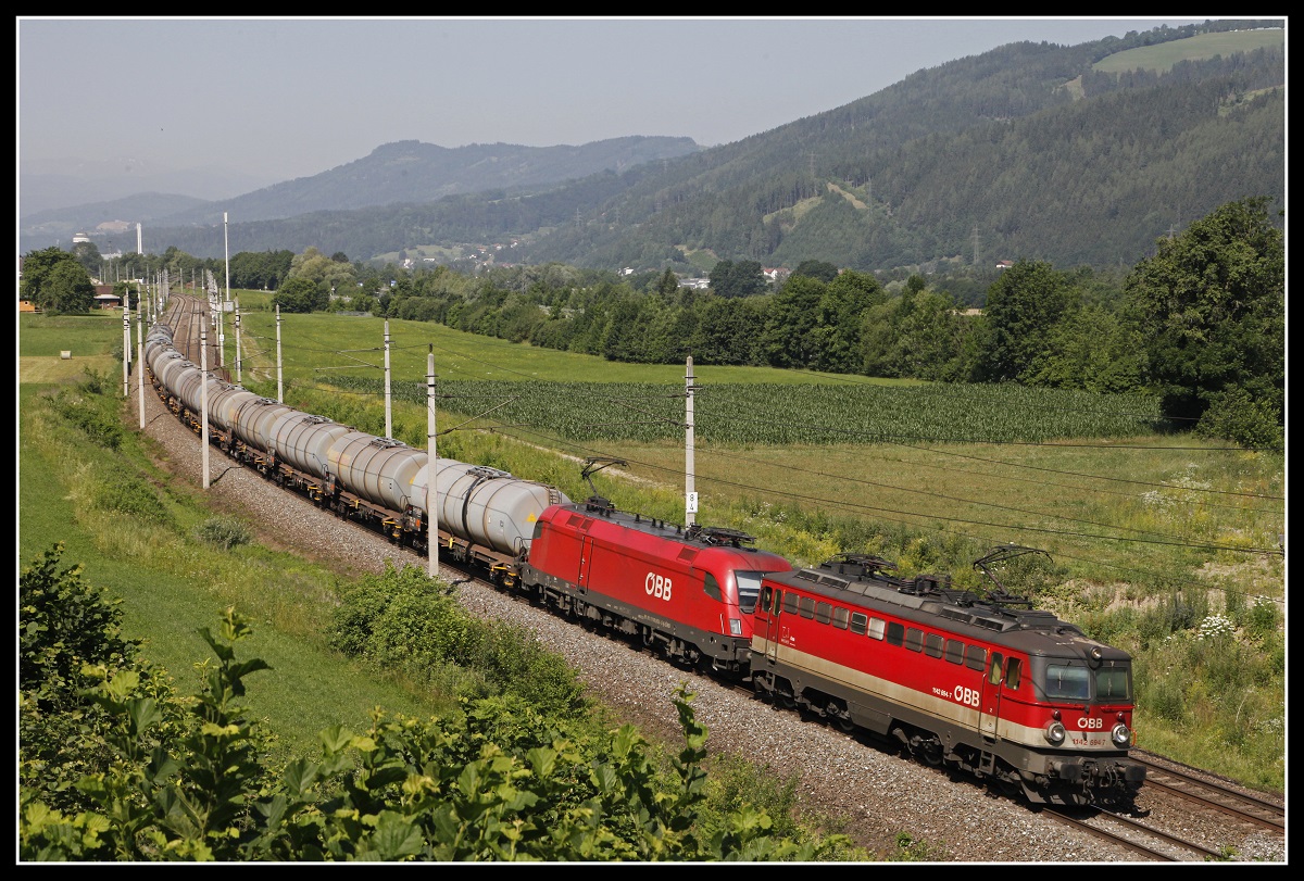 1142 694 + 1116 055 mit Güterzug bei Niklasdorf am 27.06.2019.
