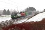 Mit dem D502 "Kalkalpen" von Graz Hbf nach Linz Hbf war am 22.11.2024 von der 1142 638 bespannt die hier unbeeindruckt vom dichten Schneefall kurz vor Trieben durch das Paltental fährt.