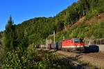 1144 283 mit Güterzug bei Niklasdorf am 13.09.2019.