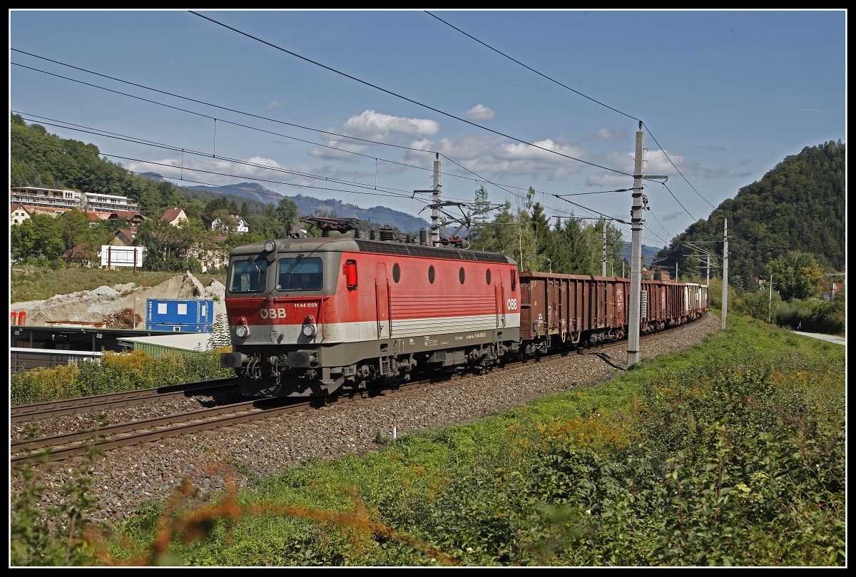 1144 059 mit Güterzug bei Kapfenberg am 20.09.2019.
