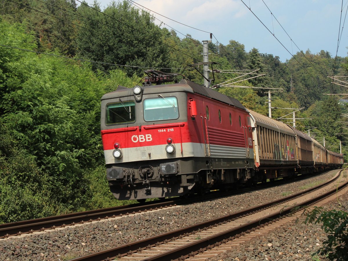 Am 5.8.2018 hat die 1144 218 in Klagenfurt Hbf den BzG62579 von Frantschach-St.Gertraud übernommen und bringt ihn nach Villach Süd Gvbf-Einfahrgruppe hier kurz hinter Pörtschach am Wörthersee.