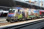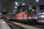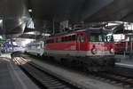 Kurz nach der Ankunft des D852 am 26.5.2020 in Wien Hbf wurden die 1144 013 und 1144 224 abgekuppelt und warten darauf als PLZ86773 nach Wien Zvb zu fahren während die Verschubreserve die drei Reisezugwagen in die Abstellung bringt.