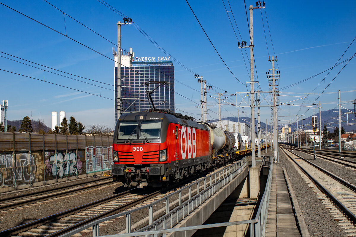 Im Bahnhof Spielfeld-Straß ist die Systemtrenndtelle zwischen den österreichischen 15kV/16,7Hz zu den slowenischen 3kV Gleichstrom und deshalb fahren die meisten Züge hier mit Schwung ein.
