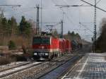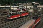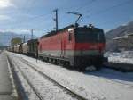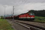 Bei Vogl geht es an einigen Wiesen vorbei. Die Innsbrucker 1144 223 (9181 1144 223-5) ist mit einem gemischten Güterzug nach Italien unterwegs. (10.07.2008)