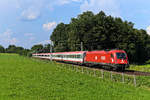 1216 012-5 ist hier wohl die "Fehlfarbe" im Railjet-Verband. (bei Fuchsreut, August 2020)