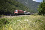 Das ehemalige Stellwerk des Bahnhofs Fischbach bot am 16. Januar 2022 den Bildhintergrund für die Durchfahrt der 1216.021 mit dem EC 85 nach Venezia SL. Inzwischen ist die Stelle schon wieder zugewachsen, die Natur hat sich den gerodeten Hang rasch zurück erobert.