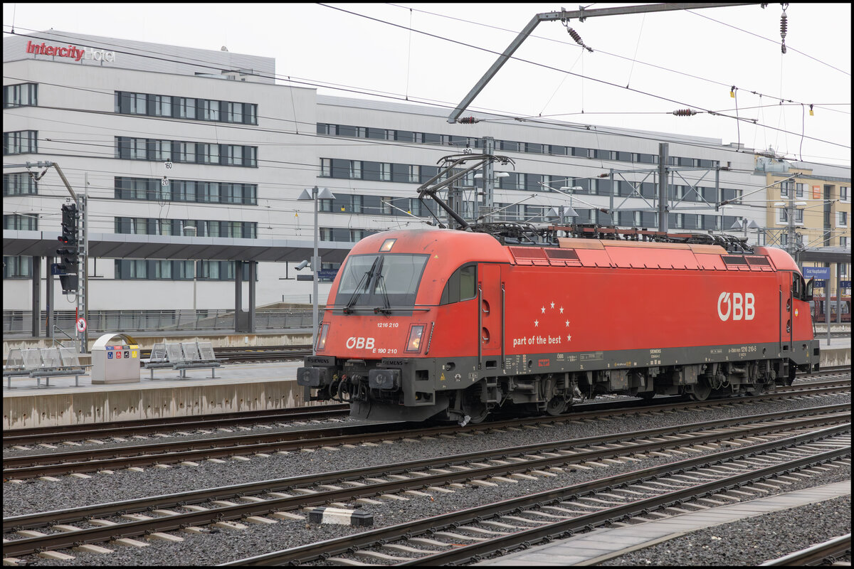 1216 014 mit EC 82 "DB-ÖBB EuroCity" (Innsbruck Hbf->München Hbf) in Brixlegg.(4.4.2012)