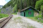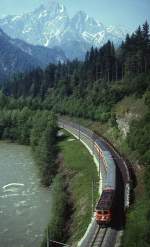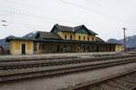 Ein bekanntes und beliebtes Vormittagsmotiv ist seit jeher der Bahnhof Stainach-Irdning mit dem 2351m hohen Grimming im Hintergrund.