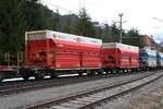 Am sonnigen 2.5.2025 steht die 1144 043 als Arbeitszuglok im Bahnhof St.Martin am Grimming und wartet mit einigen Materialwagen auf die Abfahrt nach Stainach-Irdning. Die 1044 043 erhielt nach einem Unfall den Kasten der ehemaligen Vorserienlok 1044.02 in angepasster Form. Spezialität des Bahnhofs St.Martin am Grimming ist, dass dieser als letzter ein Stellwerk der Bauart "Deutsche Einheit" besitzt.