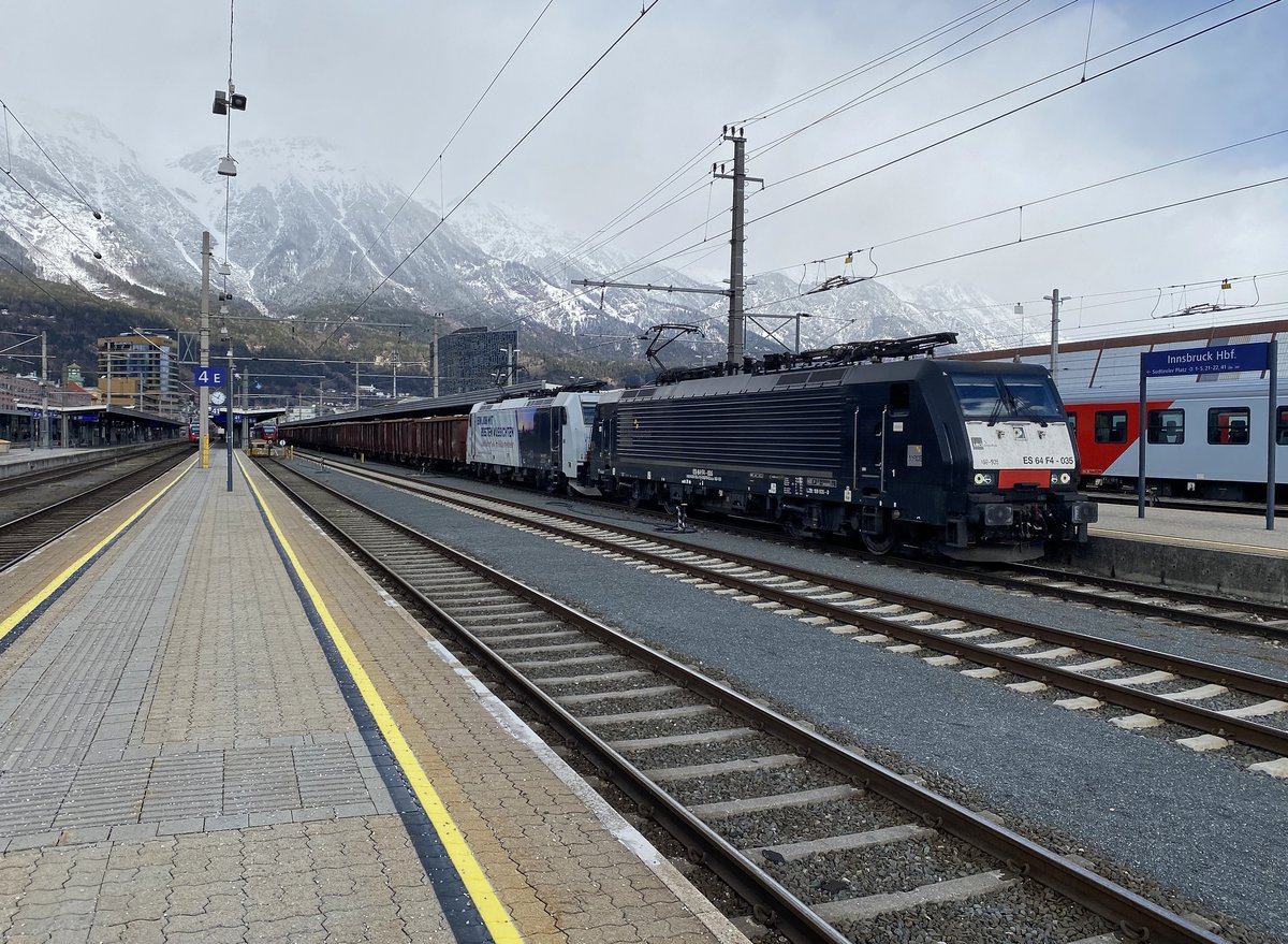Am 11.02.2020 begegneten mir im Innsbrucker Hauptbahnhof die 189 935 und die 186 443 "Traumjob LokführerIn" mit dem LOMO-Schrottzug, als sie wegen des vorausfahrenden Nahverkehrszuges 5216 einen kurzen Halt im Hauptbahnhof einlegen mussten. Markus