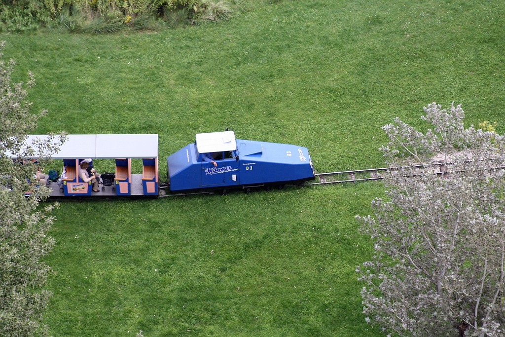 Lok D 1 der wiener Donauparkbahn am 08.Oktober 2016 kurz nach der Hst. Rosenschau.