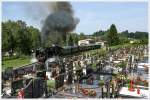 StLB Lok Kh 101 dampft auf der Feistritztalbahn von Weiz nach Birkfeld, im Hintergrund erkennt man die Weizbergkirche.