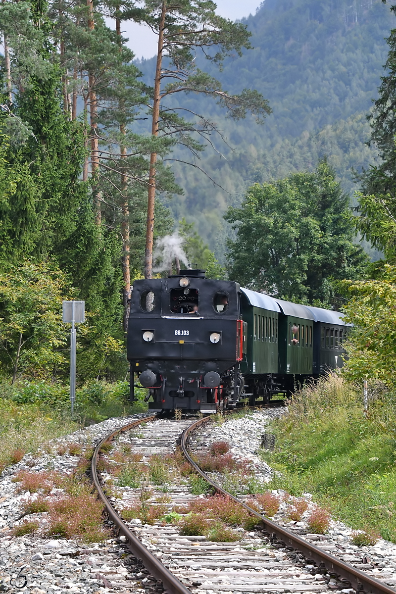 Durch des nebelige Rosental, zieht die 88.103 ihren Nikolausdampfzug von Weizelsdorf nach Ferlach.
