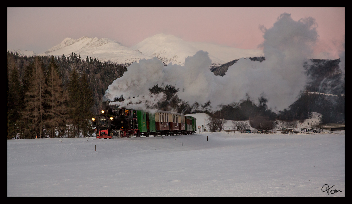 Auch heuer gab es auf der Taurachbahn wieder die beliebten Winterzüge. Hier fährt die 298.56 von Sankt Andrä im Lungau nach Mauterndorf.