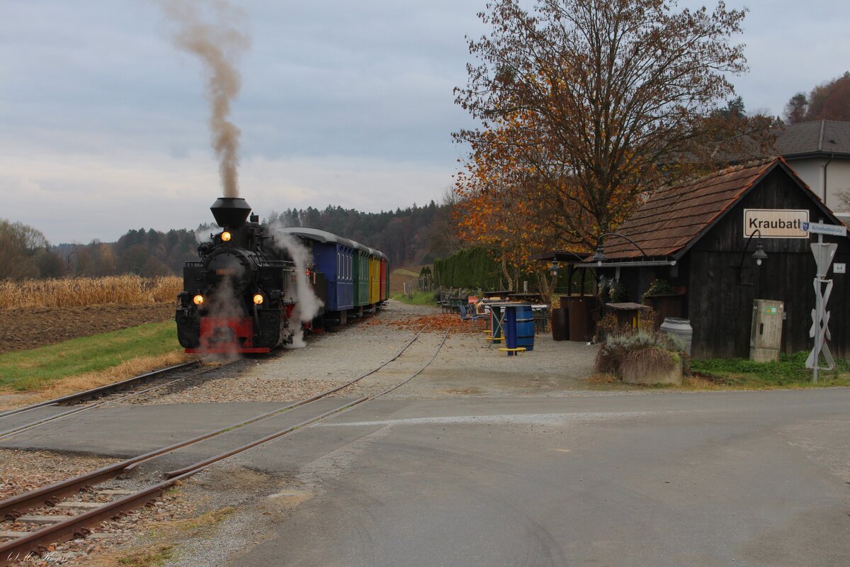 In einem ganz anderem Licht erscheint die frisch lackierte Bremsspindel eines Holzwagens am Gelände des Bahnhofes Stainz am heutigen 27.02.2016