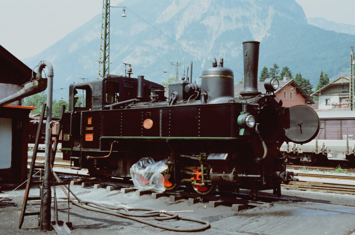 Lok 3 der Zillertalbahn mit Zug 8829 (Jenbach - Mayrhofen) abfahrbereit in Jenbach, 04.01.1987, 10.47u. Scan (Bild94444,Kodak VericolorIII).