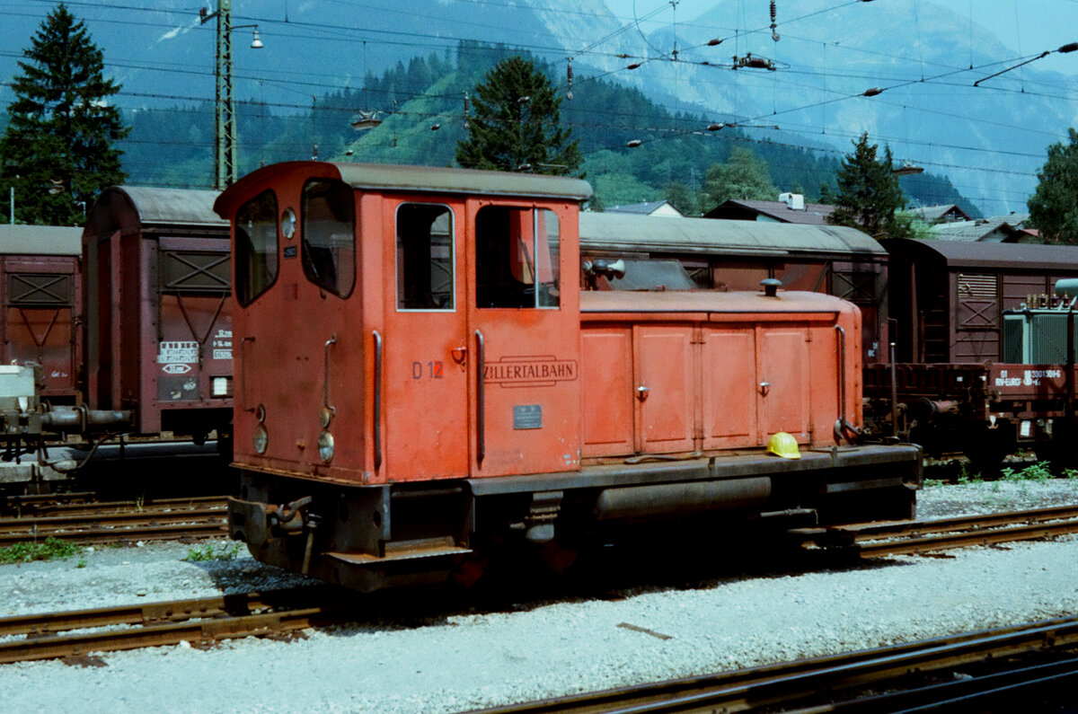 Zillertalbahn (1983) mit Lokomotive D 12 (wenn ich es recht weiß, stammte die Lok ursprünglich von der Bröltalbahn im Westerwald. Dort wurde schon vor längerer Zeit ein Museum zur Erinnerung an die Bröltalbahn in Asbach errichtet)