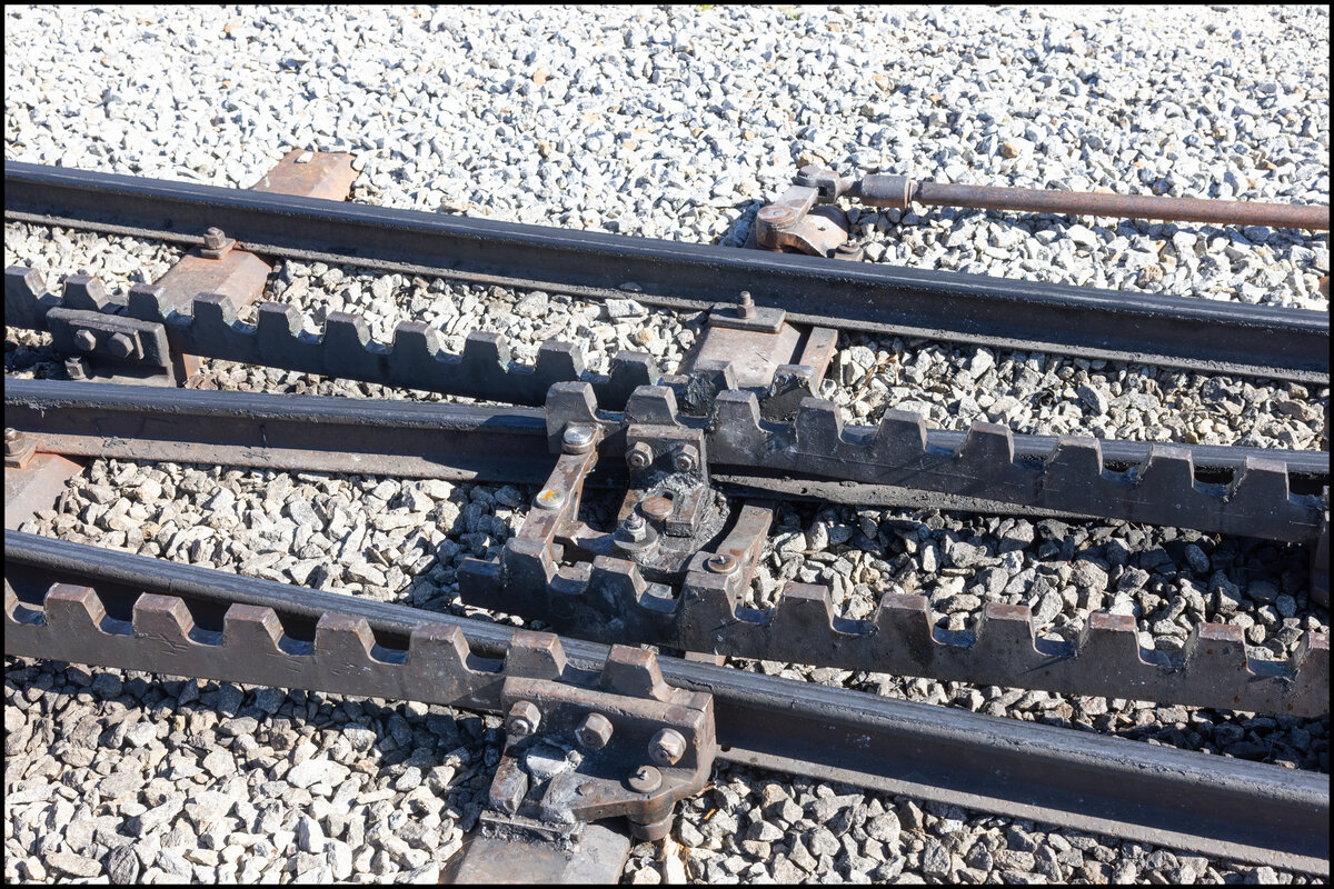 Geschichtsträchtige Schiene "GRAZ 1892 MSt" mit Flechten und Moosen verziert, verbaut an der bereits stillgelegten Anschlußbahn zur Brauerei-Zipf; 160417