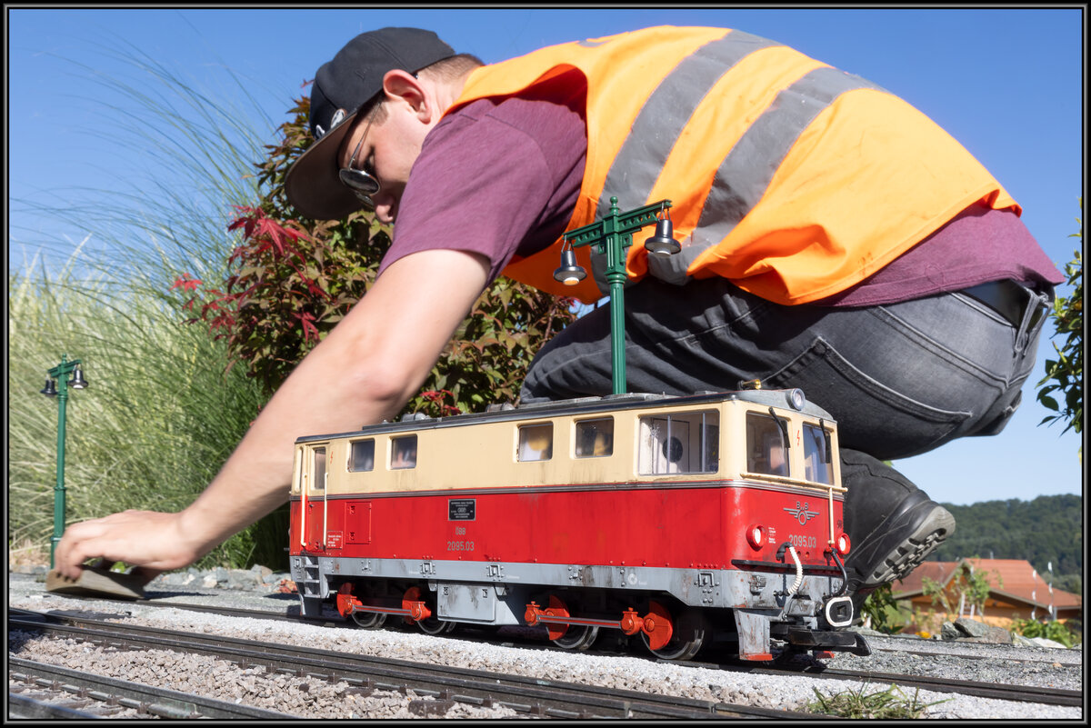 TATORT-FOTO: Die üblichen, meist bekannten Verdächtigen bei der Ausführung Ihrer Taten (:-). - Aufgenommen am 09.September 2023 beim Km 5,8 der Strecke Alt Nagelberg - Heidenreichstein anlässlich des vom WSV veranstalteten 2 tägigen "Güterzugfestival im Wald4tel" mit der WSV 2091.09. Karl Seltenhammer