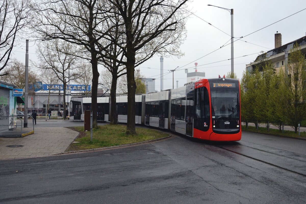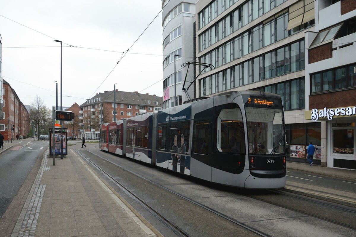 Graz. Am 19.08.2020 gab es Probefahrten mit der Avenio zwischen St. Leonhard und dem Jakominiplatz. Die Garnitur ist hier nach dem Wenden beim Radetzkyspitz zu sehen.