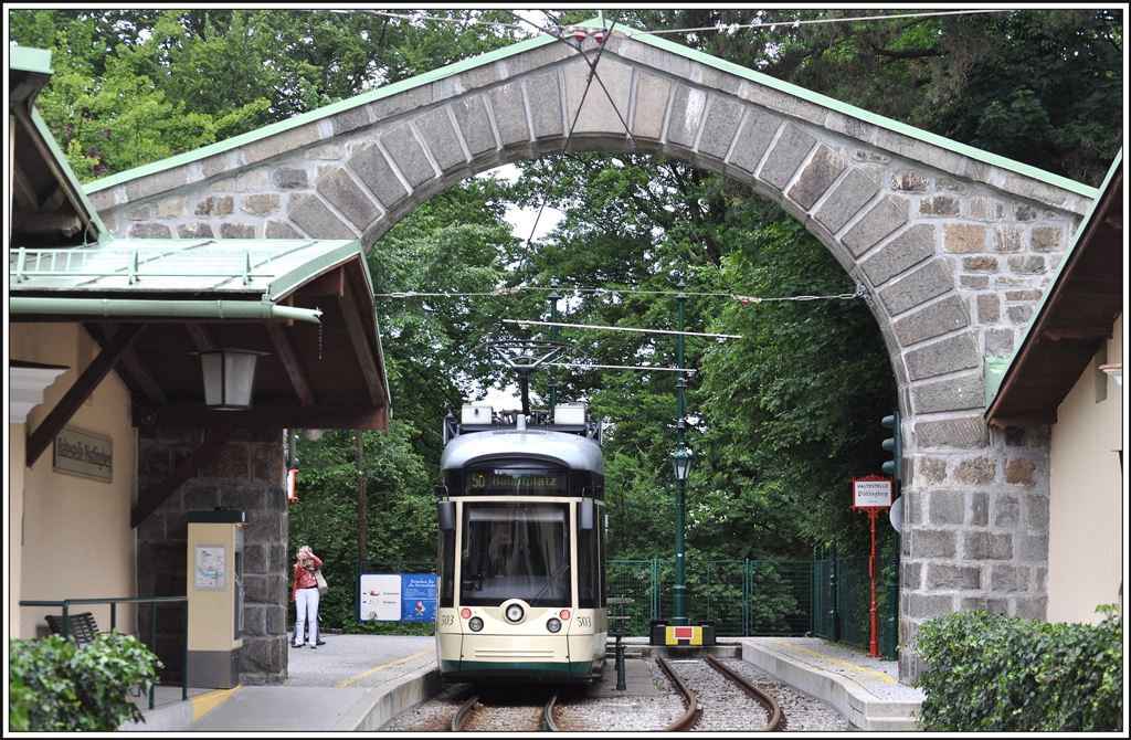 Wagen 503 an der Endhaltestelle auf dem Pöstlingberg. (30.05.2014)