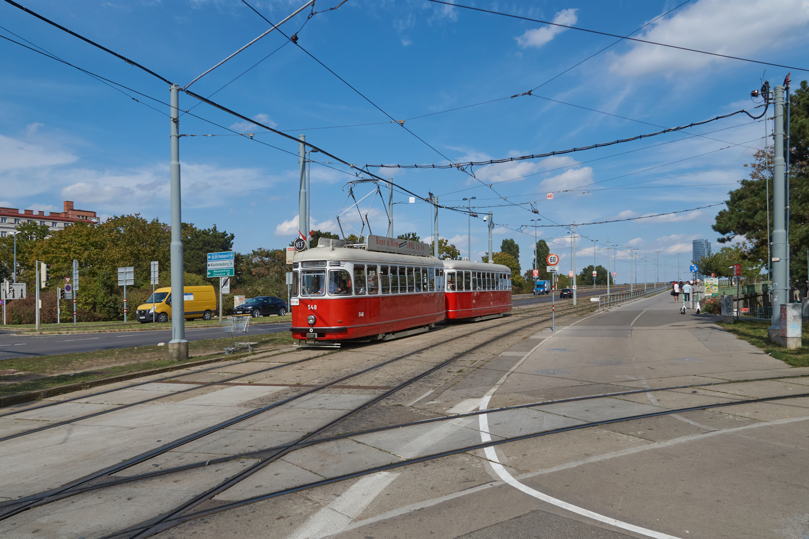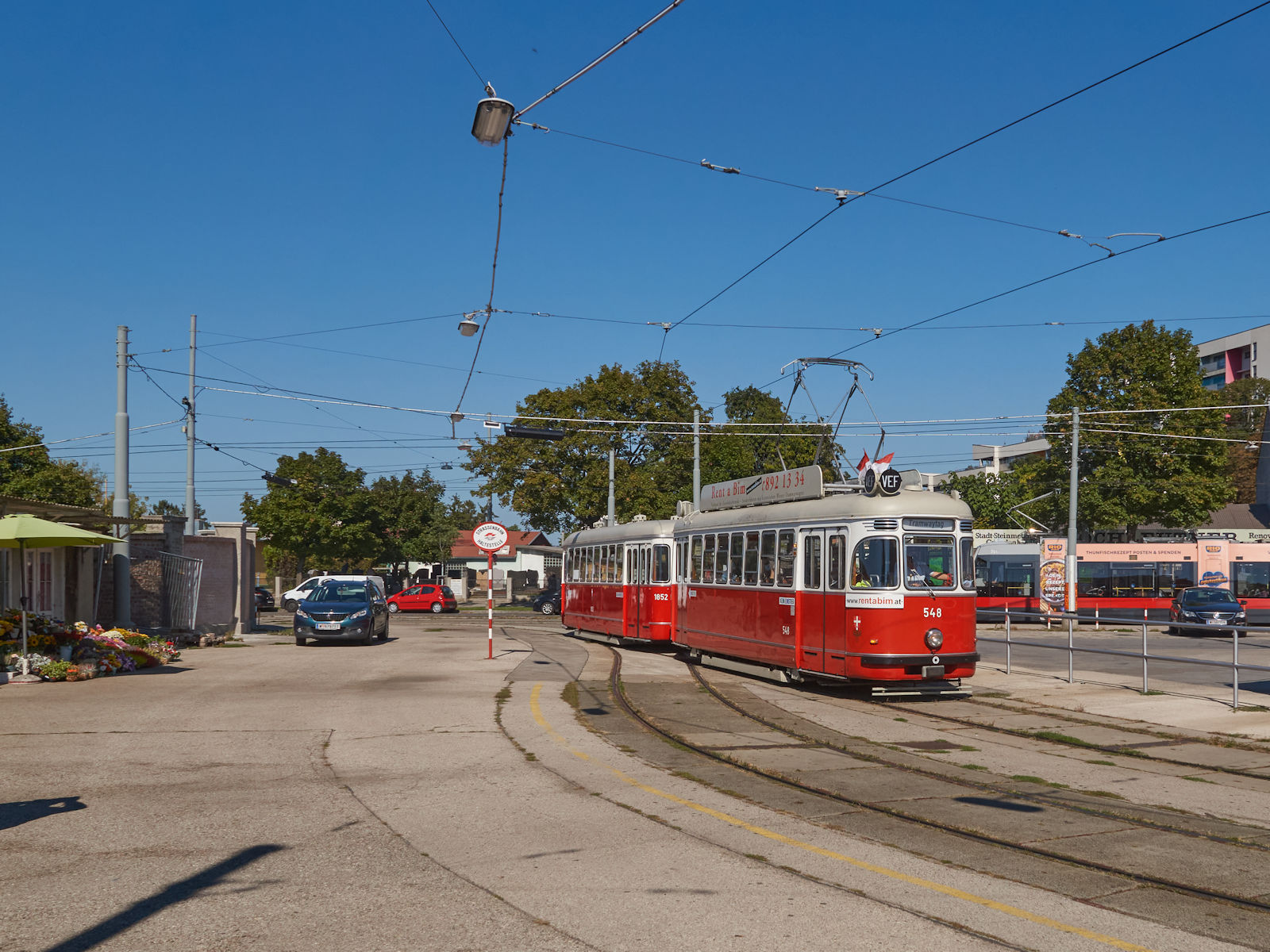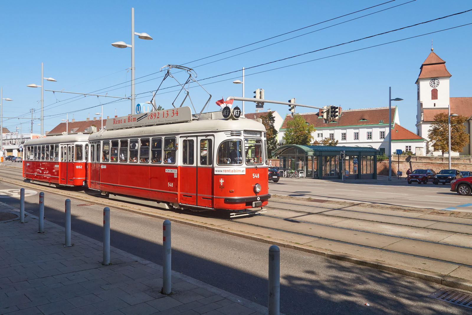 Museumsgarnitur 548 + 1852 als Zubringer zum Tramwaytag 2019 in der Simmeringer Hauptstraße. (11.05.2019)