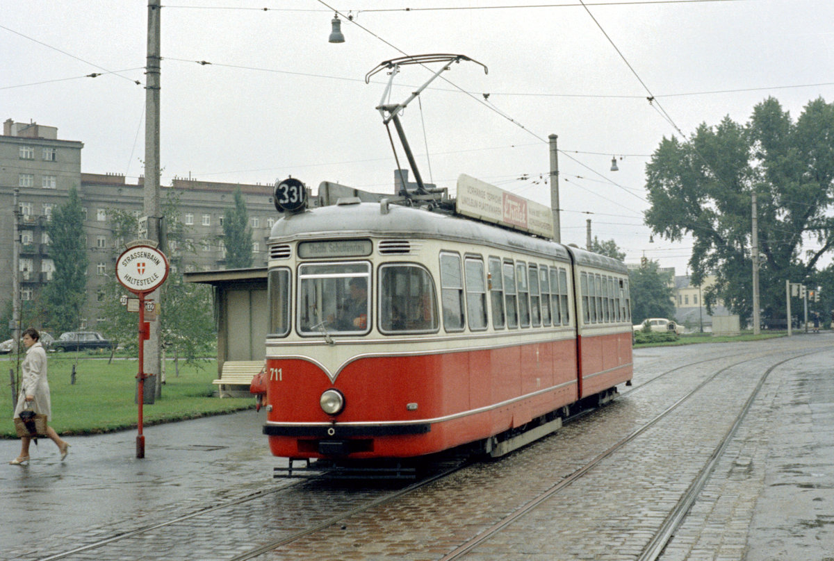 F 711 während einer Sonderfahrt neben D 305 auf der Linie 11 am Frödenplatz, 18.03.2023