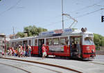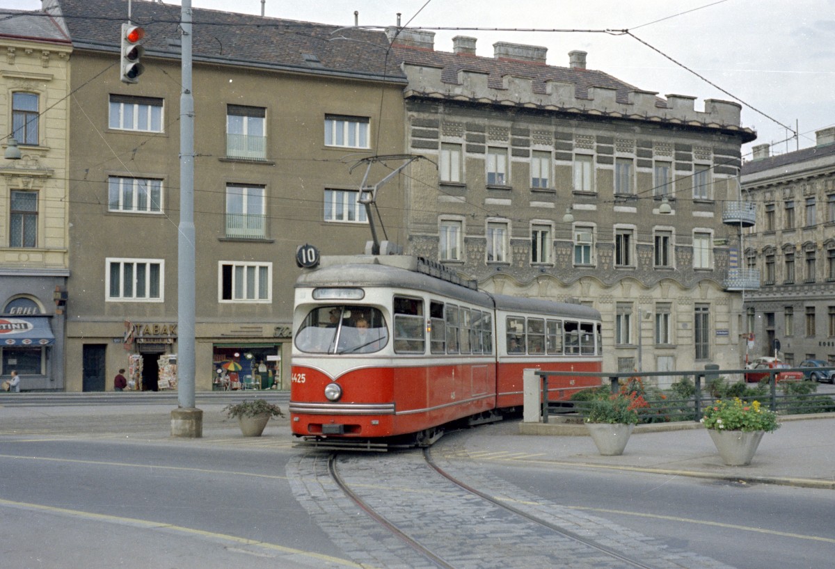 Wien WVB SL 10 (Lohner E 4425) Hietzing, Hadikgasse / Kennedybrücke am 28. August 1969. - Scan von einem Farbnegativ. Film: Kodacolor X. Kamera: Kodak Retina Automatic II.