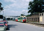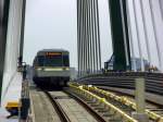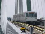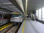 Der Hochbahnhof Donaumarina der Linie U2 am Ufer der Donau auf der Seite von Leopoldstadt. Hier bin ich wieder in die U-Bahn in Richtung Innenstadt zugestiegen.
